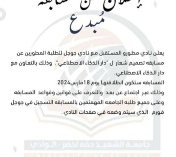 اسماء الطلبة المدعوين المشاركين في تصميم احسن شعار لدار الذكاء الاصطناعي. سيكون الاعلان عن الثلاثة الفائزين الاوائل يوم 30 افريل ... اقرأ أكثر